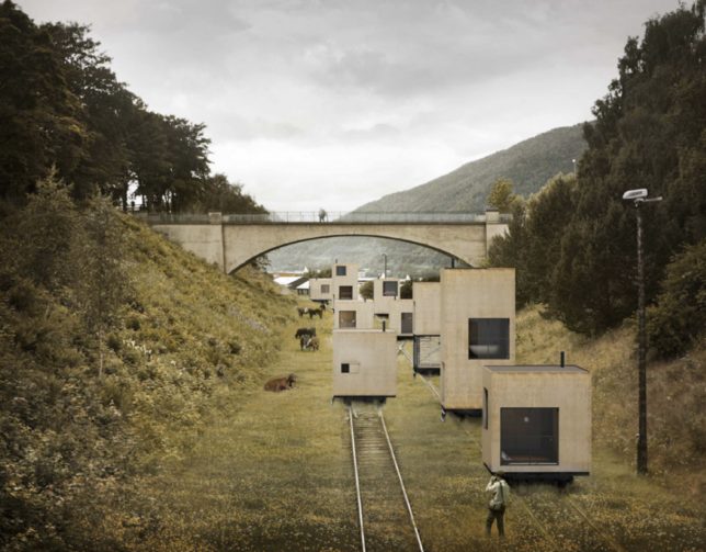 It goes without saying that no one knows what the future of mobility will look like, but imagine for a moment a kind of city on rails made up of modules that could be moved from one place to the next, all running on existing train tracks. Consider the advantages for migratory seasonal markets, mobile concert venues and other businesses and events that benefit from moving around throughout the year, embracing a sort of perpetually nomadic urbanism. Hotels, restaurants and other commercial operations see changes in demand throughout a given year and and could conceivably pull up stakes to seek out better opportunities.