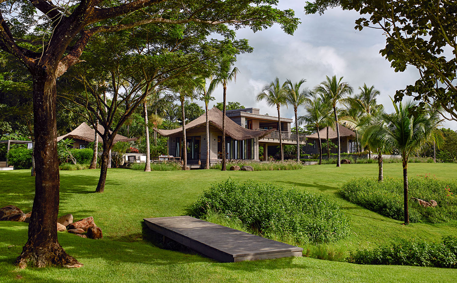 The architects sought to create a hierarchical sequence of spaces that would offer inhabitants a sense of escape as they transition between each living space. IM-KM explained: “The pavilions of the main house are all balanced around the central pavilion which contains the vestibule and indoor and outdoor living rooms. From this central space, you transition from the modern world to somewhere else, where you can forget your day, and just be on holiday.”