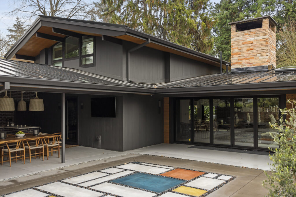 Located in the Waverly neighborhood in Portland, Oregon, the existing midcentury modern home went through an entire remodel on both the interior and exterior. The interior was transformed with updated floor plans and new finishes by Kami Gray. On the exterior, Sasquatch Architecture designed all of the windows and doors to be replaced and resized, while new paint, cedar soffits and siding were added to warm up the exterior of the home.